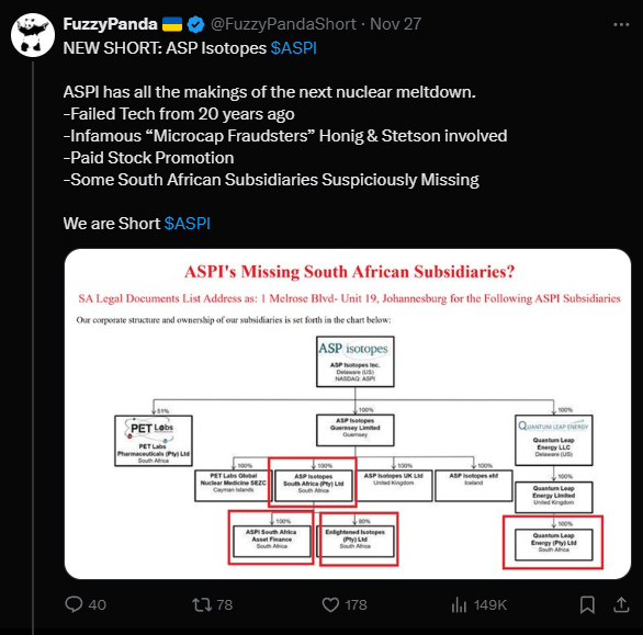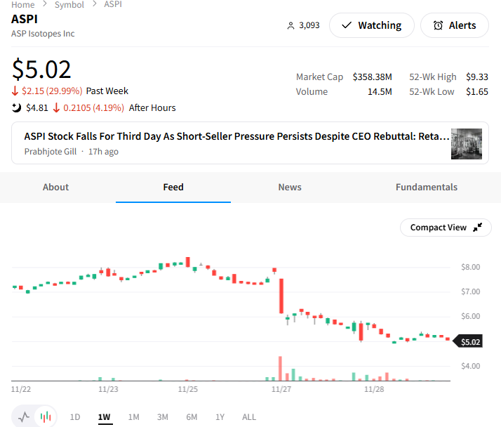 해당 의혹이 제기되고 ASPI 주가는 30% 이상 급락하였다.