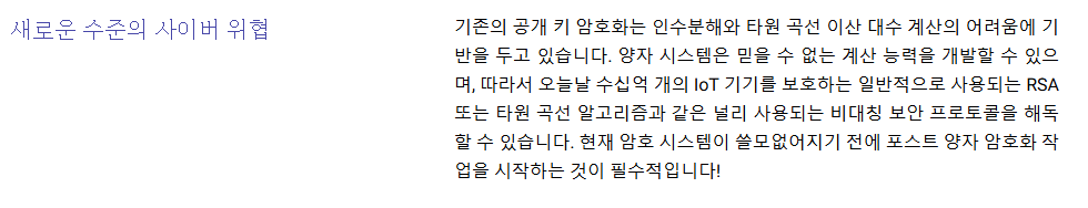 이와 관련하여 양자컴퓨터가 실용화가 되었을 때 보안문제를 해결할 수 있는 회사가 있다면 큰돈을 벌 수 있을 것이다.