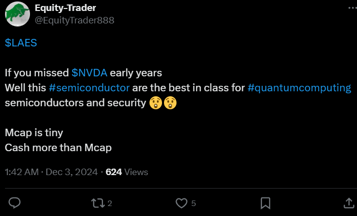 현재 미국 주식 트렌드는 양자가 꽉 잡고 있다. 관련하여 최근에는 양자 보안 회사 실스크(LAES)의 주가가 날개를 달고 날아가고 있다. 실스크(LAES) 투자자 하면 봐야 할 것은 무엇인가.그것