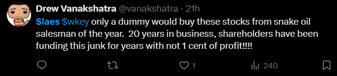 본인은 해당 주식을 조금 사두었고 LAES 관련하여 좋은 소식이 있기를 바랄 뿐이다.