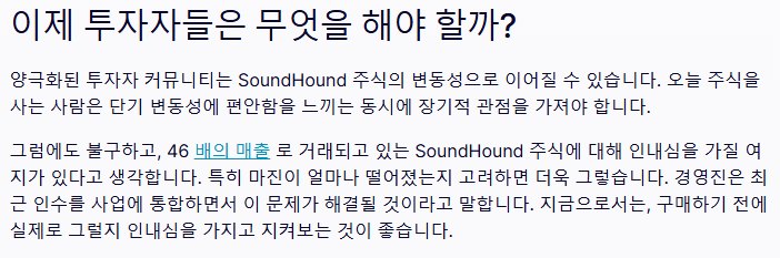 아래 글은 사운드하운드 AI를 손절했던 기록이다.