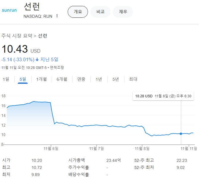 트럼프 당선 후 미국 태양광 기업 주가를 살펴보면 다음과 같다.