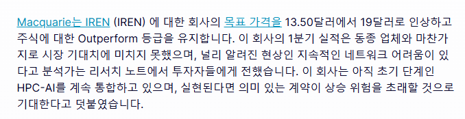 2024.12.02 - [스톡피크의 미국 주식 탐구 🔍︎/미국 주식 소식 및 정보 📣] - 아이렌(IREN) 미국 주식 소식 📣