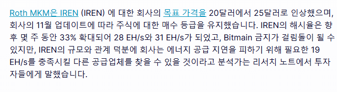 + 12.03 Jones Research에서 22달러 가격 목표로 IREN의 커버리지를 시작했다.