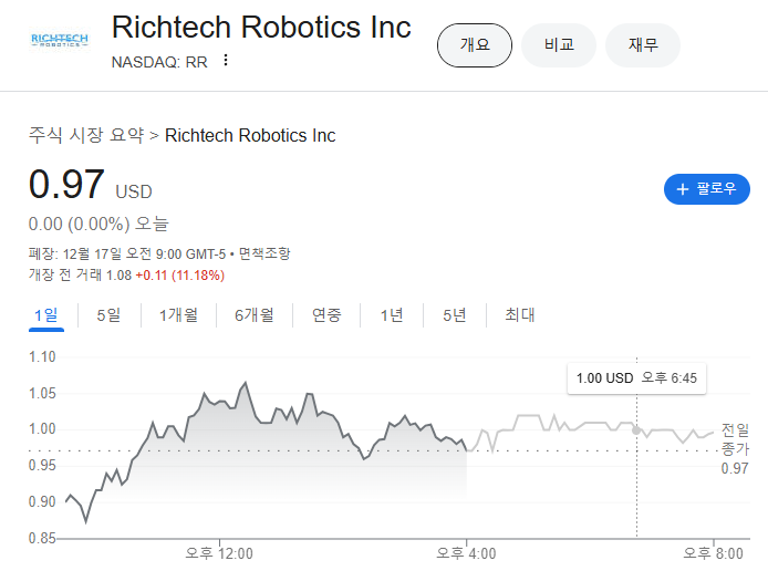 2024.12.19 - [스톡피크의 미국 주식 탐구 🔍︎/미국 주식 소식 및 정보 📣] - 리치텍 로보틱스(RR) 미국 주식 소식 2 📣