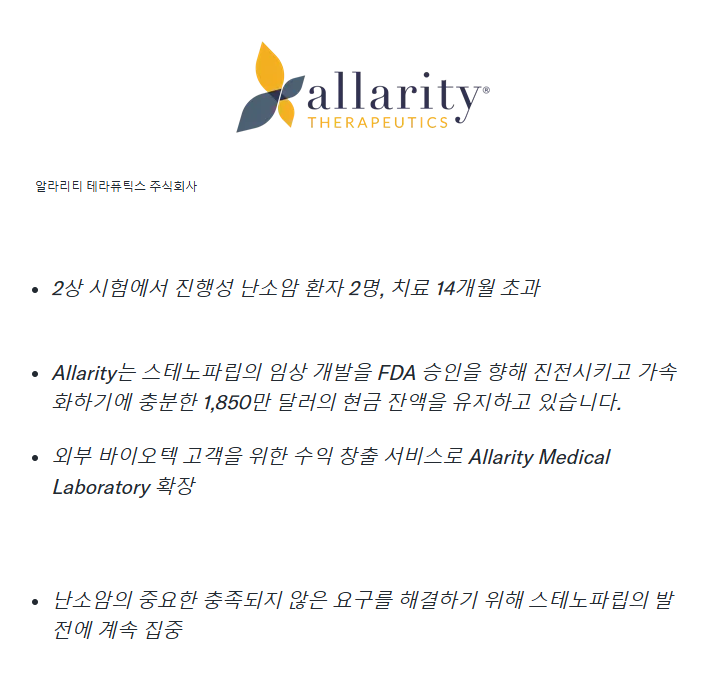 ALLR의 현금 잔액은 1,800만 달러로 시가총액의 약 4배에 달한다.
