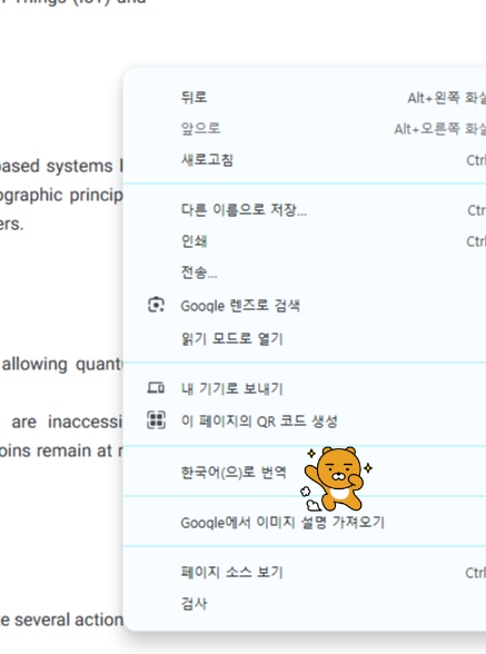 자신이 보고 싶은 페이지에서 마우스 우클릭을 하고 한국어(으)로 번역을 클릭하면 된다.