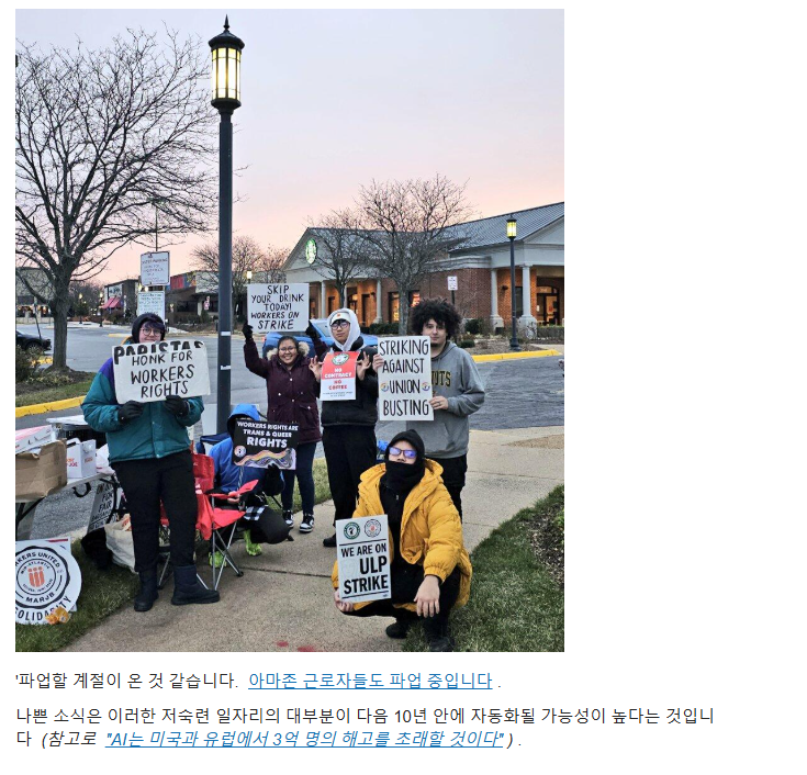 개인적인 바람으로 리치텍 로보틱스가 이러한 파업을 기회 삼아서 스타벅스와 계약을 추진해 주면 좋겠네요.