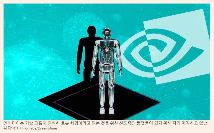 엔비디아 로보틱스 부사장 디푸 탈라는 파이낸셜 타임즈에서 "물리적 AI와 로봇을 위한 ChatGPT 순간이 코앞에 다가왔다. 전환점에 도달했다"라고 말했어요.