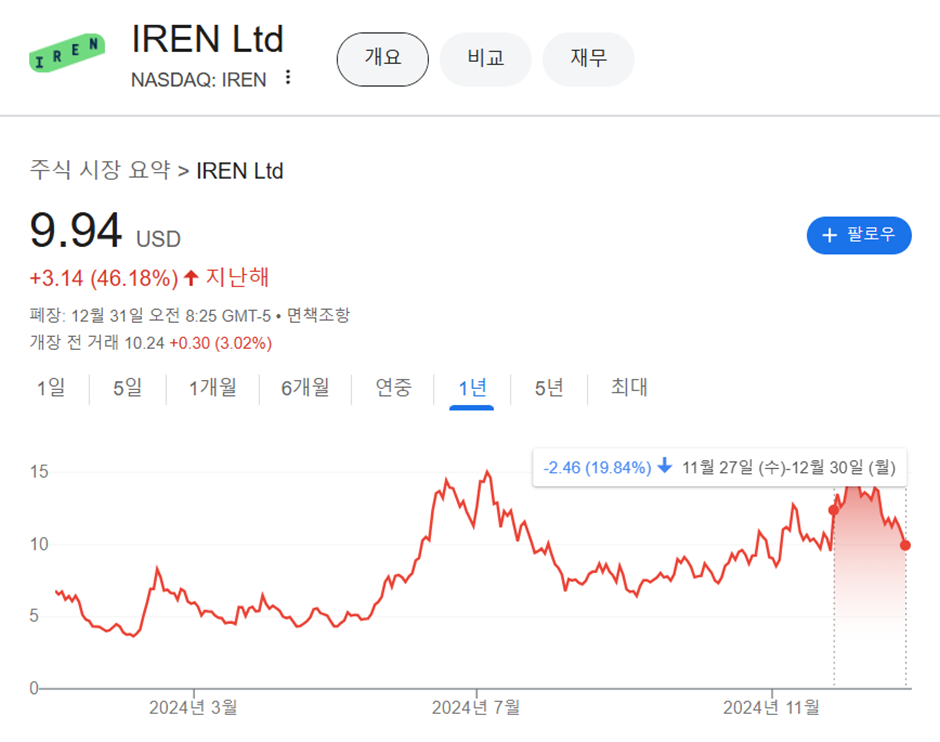 2024.12.15 - [스톡피크의 미국 주식 탐구 🔍︎/미국 주식 소식 및 정보 📣] - 미국 주식 IREN을 매수한 이유 🔍︎