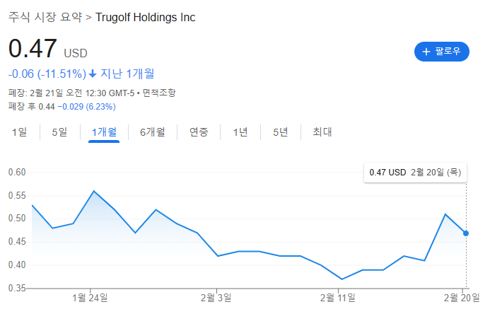 트루골프(TRUG) 주가가 0.5달러 이하로 내려갔다.