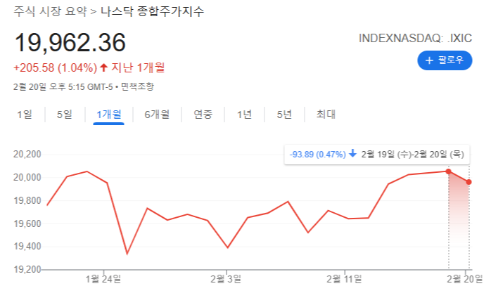 리치텍 로보틱스(RR) 전량 매도 트루골프(TRUG) 전량 매도 02.21 기준 저번 매매 날(02.20)과 비교했을 때 달러환율 약 0.3% 상승나스닥 지수 약 2.2% 하락 2% 이상 하락한 나스닥